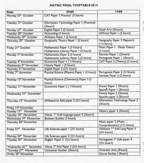 Read Online matric axam timetable 2014 Doc ManyBooks